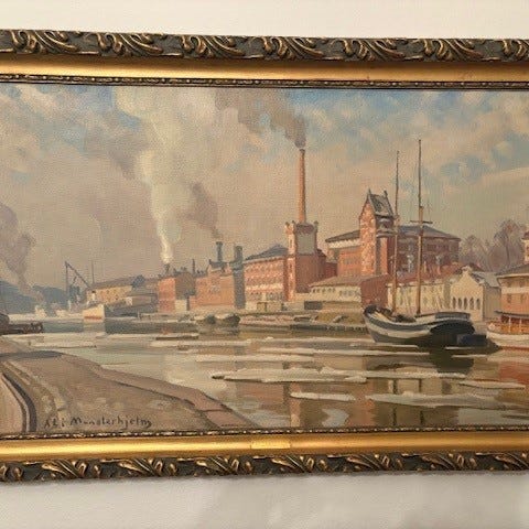 Upea yli sata vuotta vanha Ali Munsterhjelmin öljyvärimaalaus kankaalle.