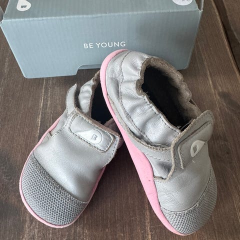 Bobux leather sandals. Ultra light sole material and soft leather. Velcro strap. The colour on the leather is worn off in places especially in the toes area, but otherwise shoes are intact and can perfectly well serve another toddler.