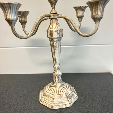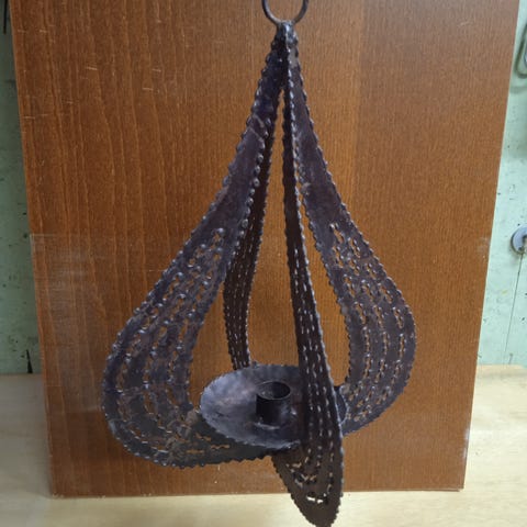 Kuvanmukainen ehjä ja siisti kynttilänjalka. Muuten metallia, mutta poikkipuu puuta.