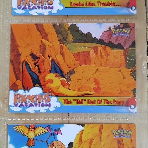 Myydään eniten tarjoavalle kaikki kerralla. Kunto hyvä/ok. Kuvista näkee paremmin. Drowzee 96holo, weezing 110holo, butterfree 12holo, charmeleon 05holo, noctowl 164, geodude 74, pikachu 25, hoppip 187, wooper 194, officer Jenny, Todd, ash hetchum, james, jesse, cassidy, nurse blissey, snack attack, looks like trouble, legends, farewell, trying out the new toy, rest and relaxation at last, the chase for pikachu, peacemaker pikachu, ep2, ep6, ep7, ep9,ep12, ep13, ep14, ep15, ep17, ep18, ep19, ep20, ep21, ep22, ep23.