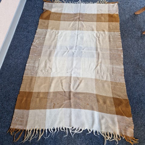 Kaunis valkosinimusta villaviltti, 100% villaa. Pieni paikattu reikä yhdessä reunassa, muuten erittäin siisti. Nouto Salosta tai Turusta.