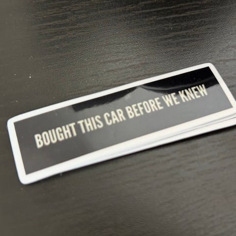 Myydään kaksi autoon liimattavaa tarraa.