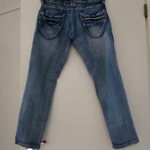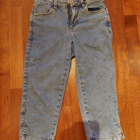 Sisäpituus 43 cm. Vyötärö n. 77 cm. 98 % puuvillaa ja 2 % elastaani.
