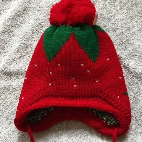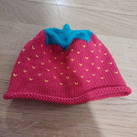 Neulottu mansikkahattu ja tossukat pienelle vauvalle. Oiva lahja esim. babyshowereissa.