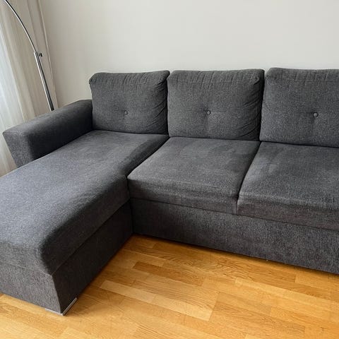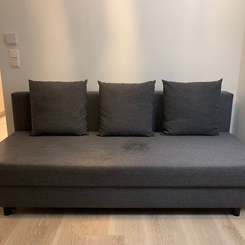 Muutaman yön nukuttu vuodesohva. Koiratalous, mutta koira ei ole ollut sohvalla.