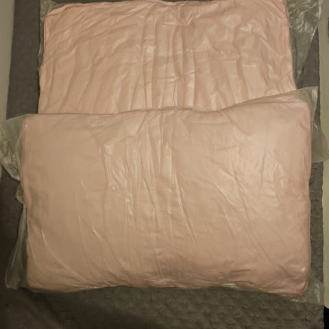 Niskatuki tyyny. Wellpur, mukautuu ja palautuu kun painaa. Pientä nukkaa pinnassa, muuten kuin uusi.