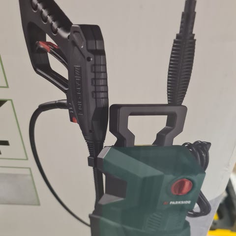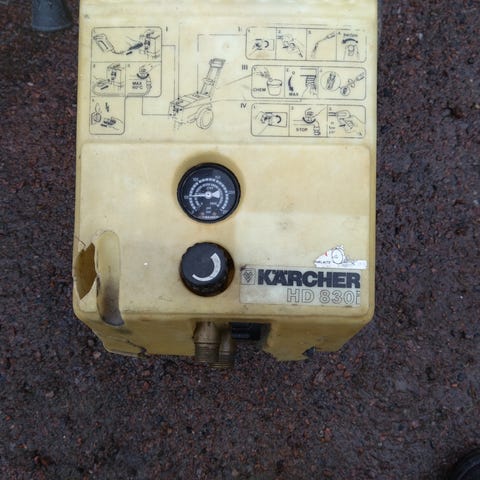 Vuokralle painepesuri. Erilaisia suuttimia sekä pesuaineen levitin.