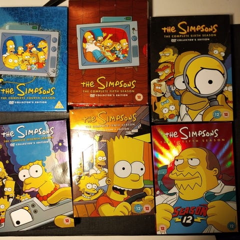 Simpsonien kaudet 1, 2, 3, 4, 5, 6, 7, 8, 9, 10 ja 11 DVD-boksit. Suomenkieliset tekstitykset.