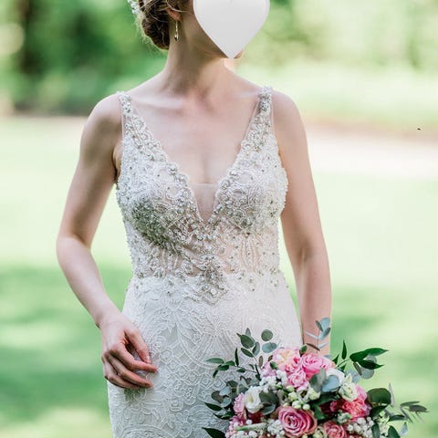 Mekko on pesty ja todella siistissä kunnossa. Ainoastaan laahuksessa on muutama pieni reikä, jotka saa halutessaan korjattua ompelijalla. Samoin muutama krassi irronnut olkaimista, mutta ovat tallessa ja saa myös korjattua.