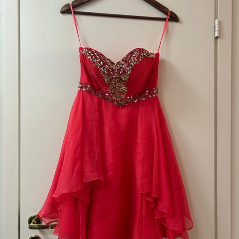 Pinkki pitsimekko käytetty koossa xs, mutta todellisuudessa nuorten osastolta koko 164