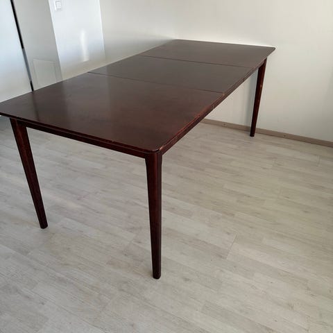 Vanhasta tammiviiluovesta tehty ruokapöytä. Mukaan neljä mustaa puutuolia. Kaikki ovat ehjiä. Myydään muuton alta pois.