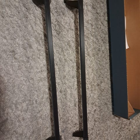 Saab 9000 alkuperäiset kattotelineet. Toisen telineen päästä puuttuu muovitulppa