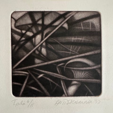 Sauli Yli-Lähteenmäki "Koskimaisema" taiteilijavedos/2 XI/XII mitat kehysten päältä korkeus n.46,5cm leveys n.36,5cm kuva-aukko n.22x16cm, vanhat kehykset