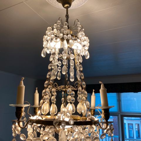 Kristalli kattokruunu, jossa on pyöreä muotoilu. Valmistettu läpinäkyvästä materiaalista, joka heijastaa valoa kauniisti. Sopii hyvin olohuoneeseen tai ruokailutilaan tuomaan ylellistä ilmettä.
