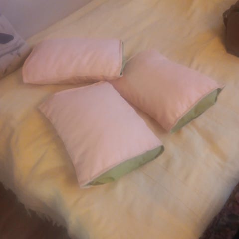 2kpl sohva tyynyjä. Merkistä en ole varma. Epäilen vallilaa mutta varmaksi en osaa sanoa.