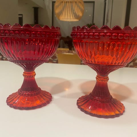 Joulun koristeluun, kattaukseen ja tarjoiluun kolme upeaa punaista lasikulhoa, hyvässä kunnossa: