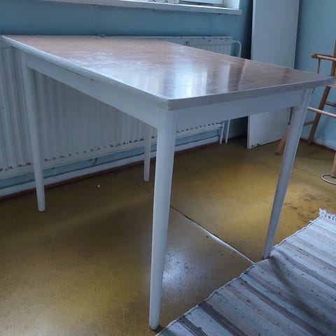 Myydään vanha ruokapöytä ja neljä tuolia. Käytönjälkiä löytyy. Nouto.