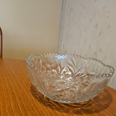 Riihimäen lasin lasinen kulho/ruukku, orkidearuukku. Korkeus 10 cm, halkaisija 13,5 cm. Ehjä. Käytetty salaattiastiana.
