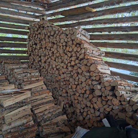 Myydään kaksi kesää kuivattu hakattu koivu polttopuuta, pituus 33 cm.