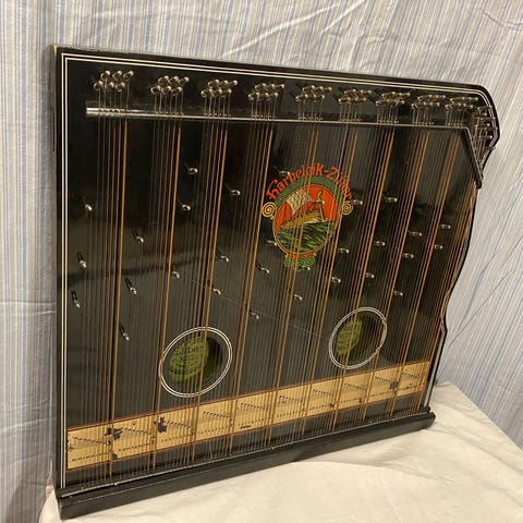 Zither ehkäpä 1900-luvun alkupuolelta. Pohjassa kuvan mukainen halkeama. Mitat: 52 cm x 40 cm x syvyys noin 4,5 - 6 cm. Ääntä kyllä lähtee mutta vaatii säätöä tms. Sijainti on 25 km Mynämäen keskustasta.