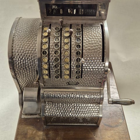 Anker-merkkinen vanha kassakone.