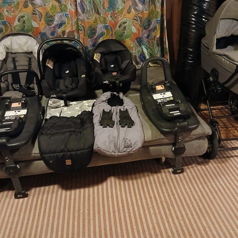 Kahdella lapsella käytössä ollut kaukalo. Tarvittaessa myydään myös autoteline erkseen.