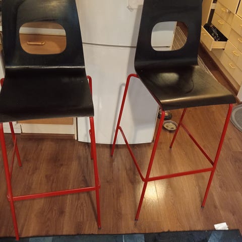 Myydään 2 jakkaraa. Hyvässä kunnossa, on ollut vähässä käytössä. Kuvassa näkyy myös baaripöytä, mutta se on jo myyty.