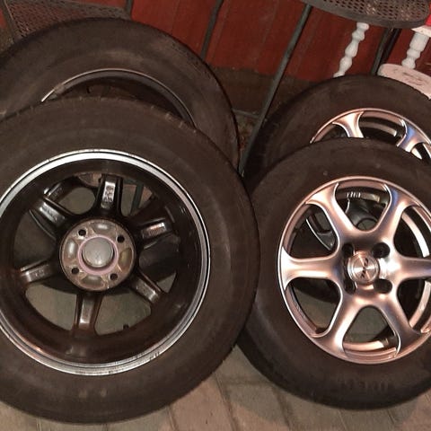 Myydään hyvät alumiinivanteet ja neljä kesärengasta. Kaksi rengasta jo tiensä päässä ja kaksi vielä hyväkuntoisia.