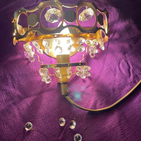 Myydään n.55 vuotta vanha seinävalaisin. Valmistaja Turun Kristalli. Lampetin nimi Barokki 102 Kulta. Metalliosat kullattua messinkiä. Valmistettu 1970 luvulla. Tämän vanhan valaisimen arvo n. 200 € On hyvässä kunnossa. Samaa lampettia valmistetaan edelleen hinta € 1300. Myyn hintaan € 100 voit myös tehdä tarjouksen. Nouto paras vaihtoehto, paikkakunta Imatra. Voidaan tarvittaessa myös postittaa! Hinta € 100 + mahdollinen postikulu. Tiedot valaisimesta tarkistettu Turun Kristallilta.