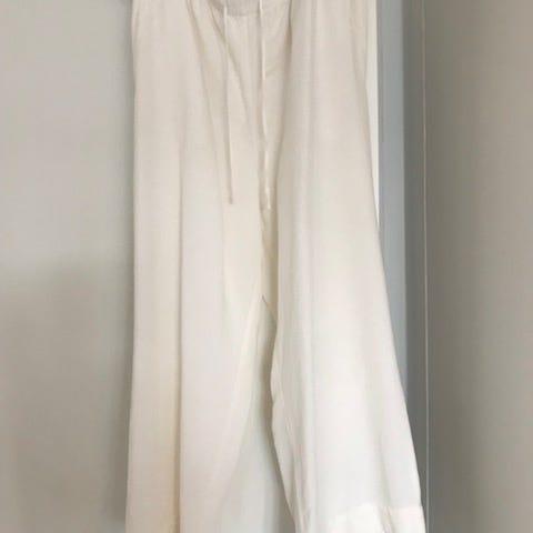 Vajaamittaiset luonnonvalkoiset Zaran leveät culottes housut, pellava/viskoosi sekoitetta.