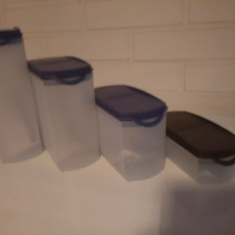 1,6 L hinta 23 €, 1 L hinta 20 €, 3,5 dl hinta 15 € kpl Astiat joissa silikonijousi. Helppo avata ja sulkea yhdellä kädellä. Pitää kaapit siistinä kotona mökillä ja asuntovaunussa väreissä löytyy Mustakantisia ja Punakantisia käyttämättömät kysy lisää kulkeutuu sovittaessa lähialueelle + postitus 8,90 €