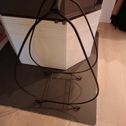 Erittäin hyvässä kunnossa oleva puolikuun muotoinen takkapuuteline.