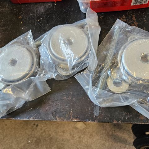 Työkoneen säätöjalka, vaimennin kumitassulla 6kpl. Korkeus 31cm, pultin halkaisija 25mm, kumitassun halkaisija 7.5cm. Hinta on kpl hinta. Ensisijaisesti nouto mutta voidaan myös lähettää ostajan kustannuksella. Näillä saat raskaammankin työkoneen vaateriin. Ilmoitus poistetaan kun tuote on myyty.