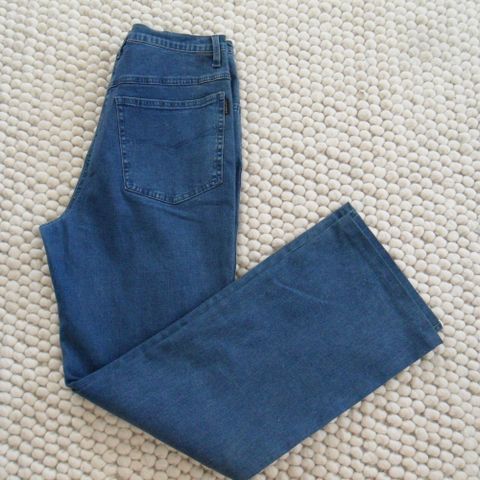 Koko 44. Vyötärö 90cm. Lantio n.110cm. Lahkeen pituus haarasaumasta mitattuna 73cm. Lahkeen leveys lahkeen suulla 45cm.