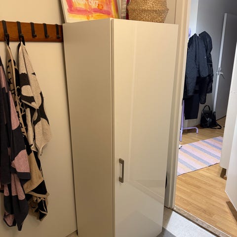 Ylimääräisenä jäänyt valkoinen kaappihylly.