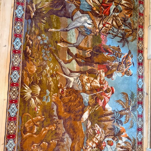 Hulppea isokokoinen itämaistyylin gobeliini lämpimin, lempein värein. Hyväkuntoinen ja siisti. Mitat ilman hapsuja Leveys 139 cm, korkeus 98 cm.