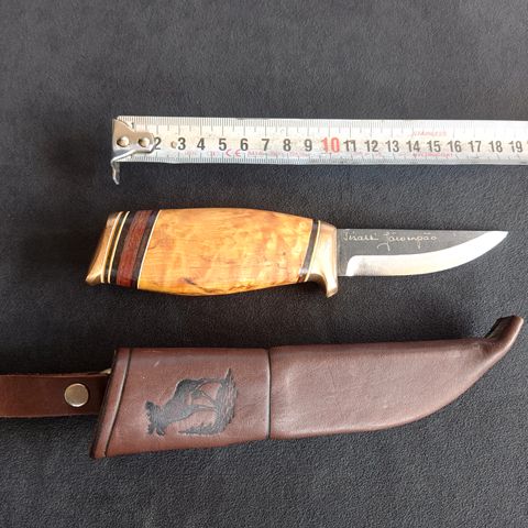 Vanhaksi puukoksi kunto on oikeinkin hyvä, en tiedä kriteeri asteikkoa puukoissa niin kai kohtalainen oli sitten oikein valittu. Kahvassa, ei hirvi puolella on jotain röpelöä, varmaan saa pois vähän hiekkapaperia ja lakkaa, jää ostajalle se operaatio jos sen haluaa tehdä. Terä muuten hyvässä kunnossa, mutta on jotain mustaa siinä, en ole koittanut mitenkään saada sitä pois. Hirvijahtipuukko on suunniteltu hirvimiehille pistopuukoksi. Terä on kuin uusi, jos ei olisi sitä mustaa.
