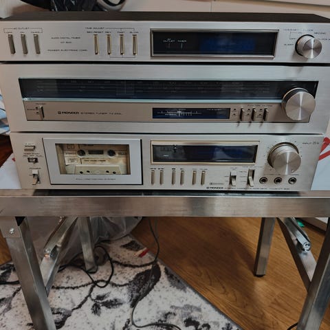 2kpl kaukosäätimiä. Vasemmanpuoleinen C -kasetti-dekki ei toimi, muuten pelittää.
