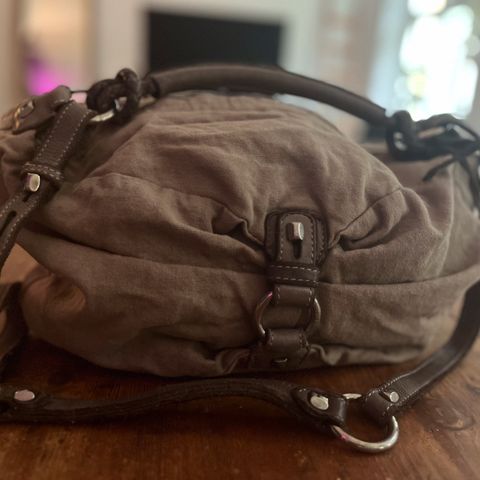 Vähän käytetty italialainen merkkilaukku, nahkaa.