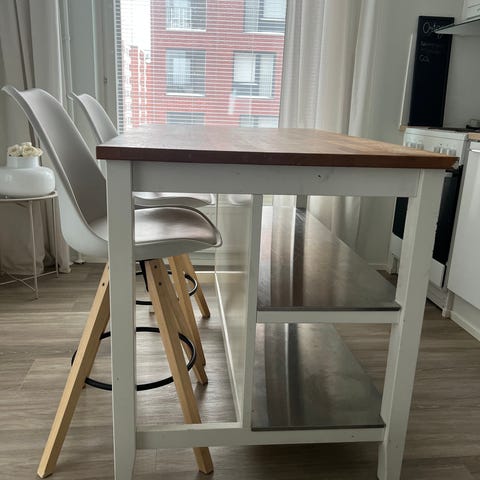 Myydään tilava lipastosta rakennettu saareke. Todella jykevää tekoa ja sisälle mahtuu paljon tavaraa. Sivulle mahtuu pari baarijakkaraa.