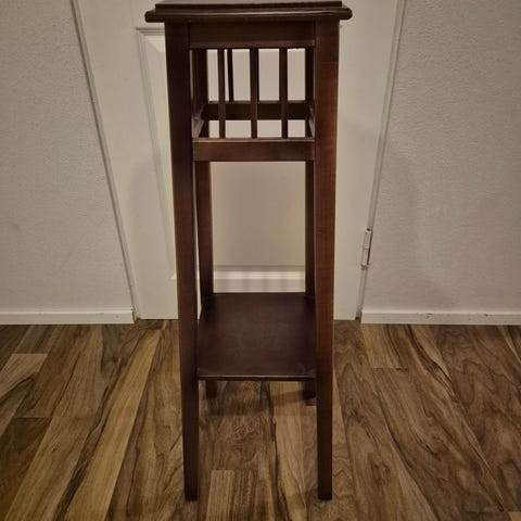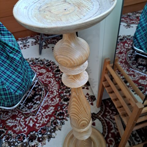 Korkeus 70 cm. Jalka on puun pahka ja pylväsosa on luonnon oksaa.Tukeva. Uniikki.
