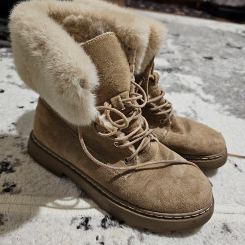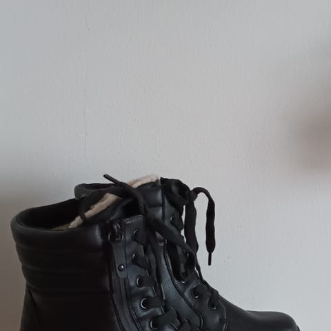 Teddy vuorella olevat nauhalliset talvikengät kengissä pukemista helpottavat vetoketjut sisäpuolella. Päällinen mokkajäljitelmää uudenveroiset