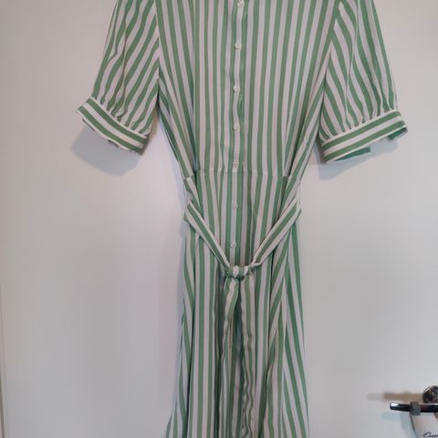 Kiva ajaton raidallinen mekko. Polvipituinen. Takana vetoketju. Pinnassa aavistus pesunukkaa mutta yleisilme siisti.