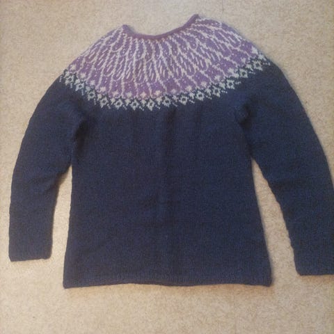 Käytetyt langat Sandnes Garn Silk mohair ja Peer Gynt, molemmat mustia.