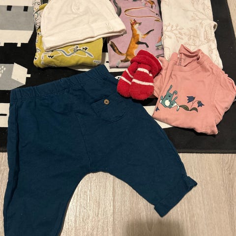 Pieni setti vaatteita pienelle. Merkit mm. Mini rodini, Småfolk, Reima, Polarn O. pyret.