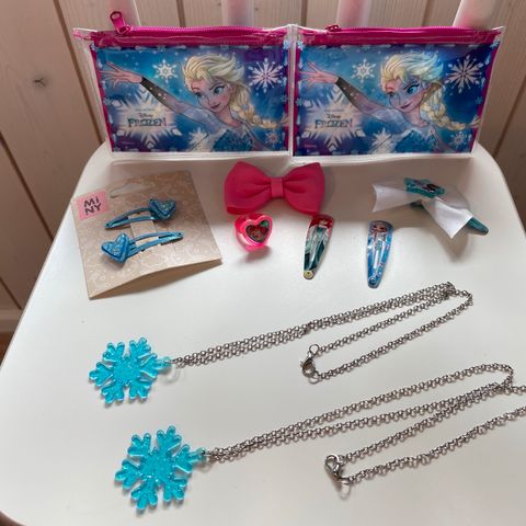 Lasten Frozen koruja yms. Uniikkeja käsin tehtyjä pinnejä useilla kuvioilla. Nämä ostettu muutama vuosi sitten suomen käsityöpajoista. Pinnin saa pois (kuva), nyt olisi tarpeettomia ja ovat ehjiä ja siistejä. Myydään mielellään koko setti. Hintaa ohjaa nuo huopapintaiset pinnit/klipsit.