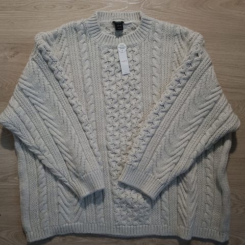 Vaaleansininen neule akryylia, XL, takahelma pidempi, sivuilla halkiot, V- kaula-aukko
