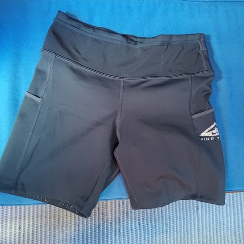 Niken pinkit shortsit alushortseilla. Vyötäröllä nyöri ja vyötärönauhan sisäpuolella takana "Just do it" -teksti, jonka voi kääntää esiin. Vyötärö venyttämättä 38 cm, vyötärö-haarasauma 25 cm, lahkeen pituus 10 cm ja leveys 22,5 cm (sisäshortsi) 29,5 cm (ulkoshortsi).