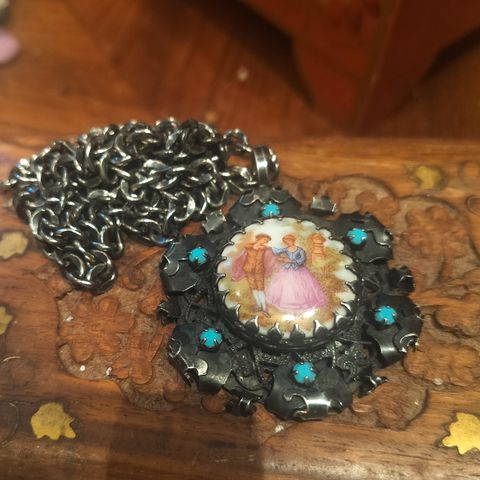 Korun leveys on n. 5,5cm ja korkeus n. 4,5 cem, ketjun pituus on 65cm.