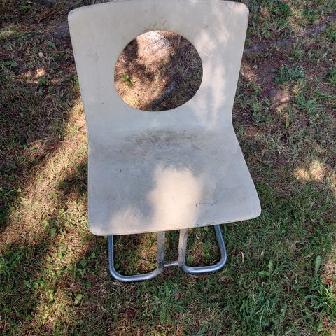Kuvan mukainen tuoli, tuoli ehjä. Jalassa myös nivel, eli istuinosa pyörii.
